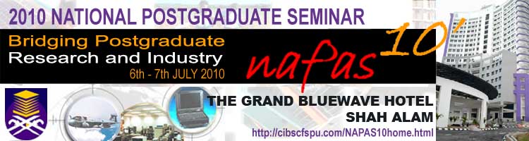 I represented the Law Faculty of UiTM Shah Alam to present a concept paper on the second day of the National Postgraduate Seminar 2010 (NAPAS 2010) 6-7 July at Grand BlueWave Hotel, Shah Alam, Selangor. More than 100 research papers were presented by postgraduate researchers all over the country, and 4 keynote papers from accross the globe were presented at the seminar.