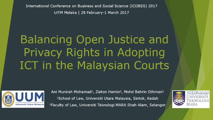 Paper presentation: Balancing open justice and privacy rights in the adoption of ICT at the Malaysian Courts